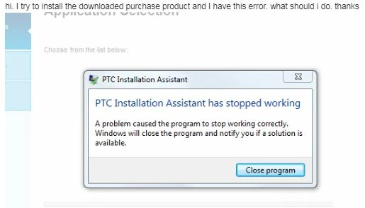 Installation has a problem with error 'PTC Installation Assistant has stop working' + bla bla bla. Can you please help me...