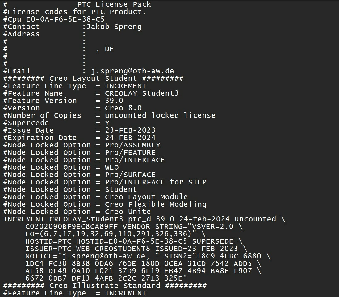 Hey, I've got the same problem, but could not fix it with the instructions above. Could someone please help me out? I've already tried changing my password and followed the relicense guide. I recieved a document saying that my license is renewed (see attachments), but creo still says that my license expires in 14 days.
