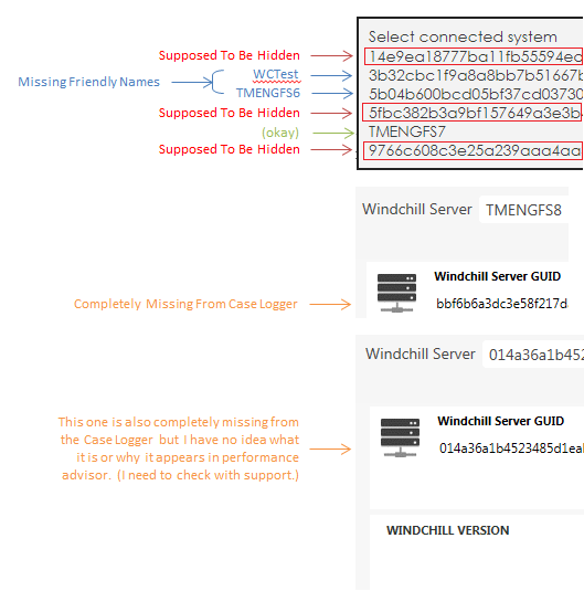 Peter Case‌, another update for you.  During case creation today we noticed that the case creator is using incorrect values for the connected systems.  For example, here are snippets from Windchill Performance Advisor for one of our systems.  Notice the Windchill Release: