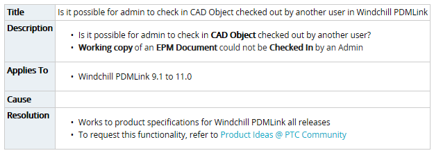 Okay, the last part was over the top, but you get the point. Use plain language, answer the questions (all of them), set realistic expectations, and be as helpful as possible. If there is any remote possibility of a workaround, say so! If this can't be done, what should be done instead? The more information provided, the better. This boiler plate response communicates all the wrong things about both support and PTC. More critically, it provides NO HELP for the end user who is searching the knowledge base trying to solve problems.