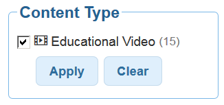 When you enter search keywords and one or more videos are available, a new content type will appear on the left hand side: