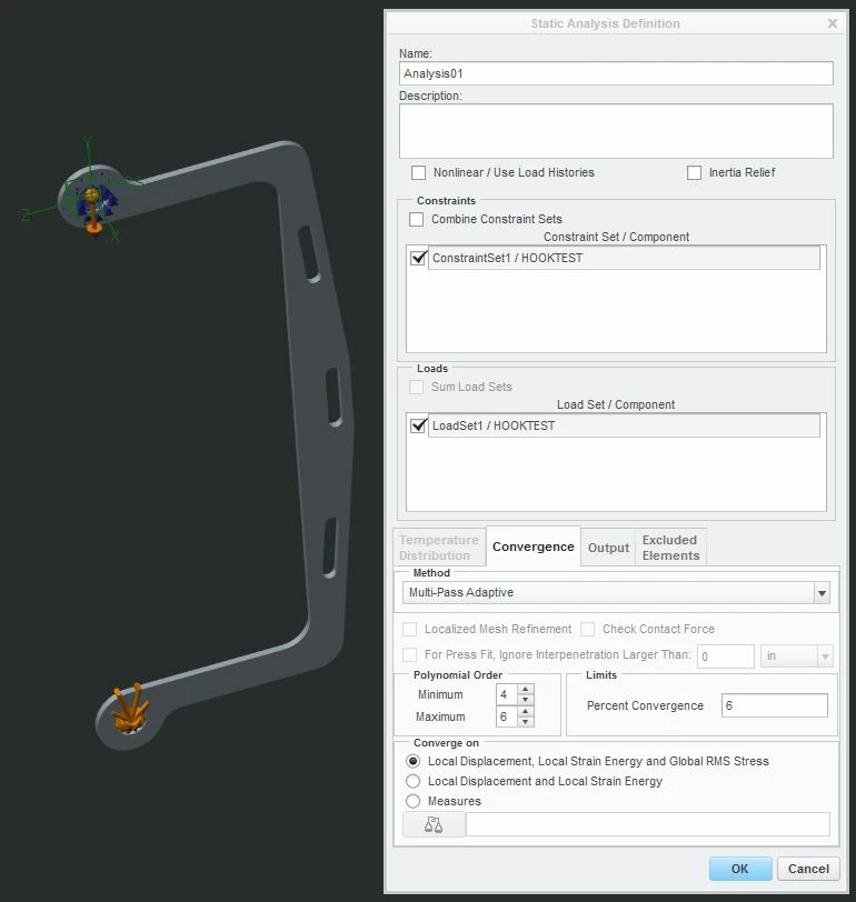 My immediate problem is a huge discrepancy between stress and displacement in my static analysis. You can see my method and results via the attached screen captures.
