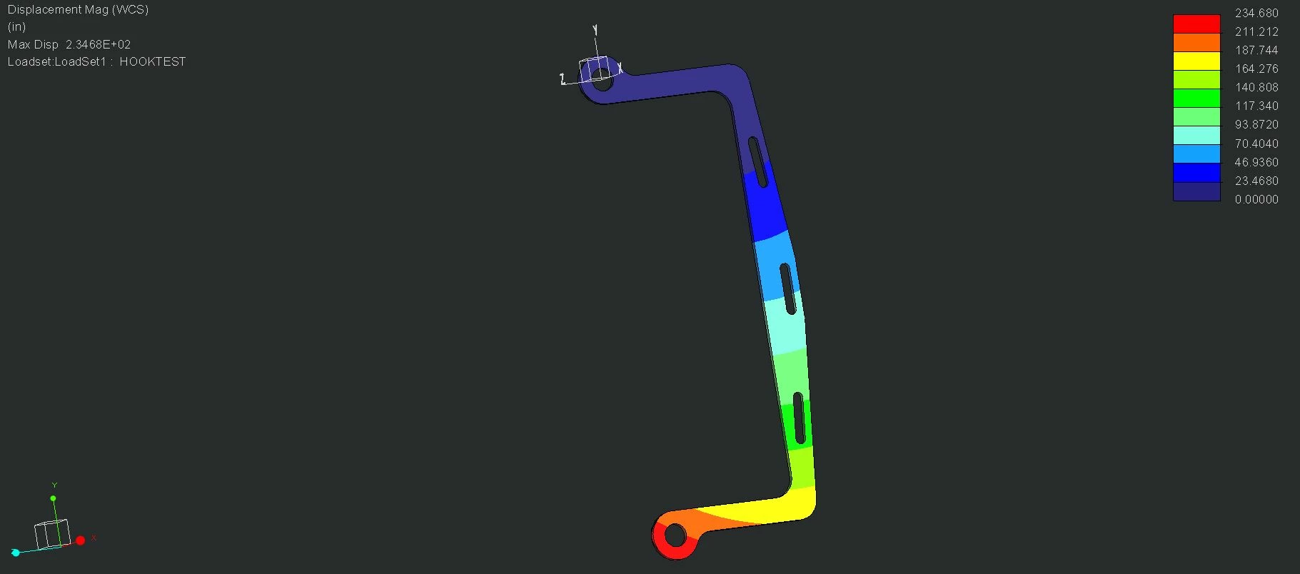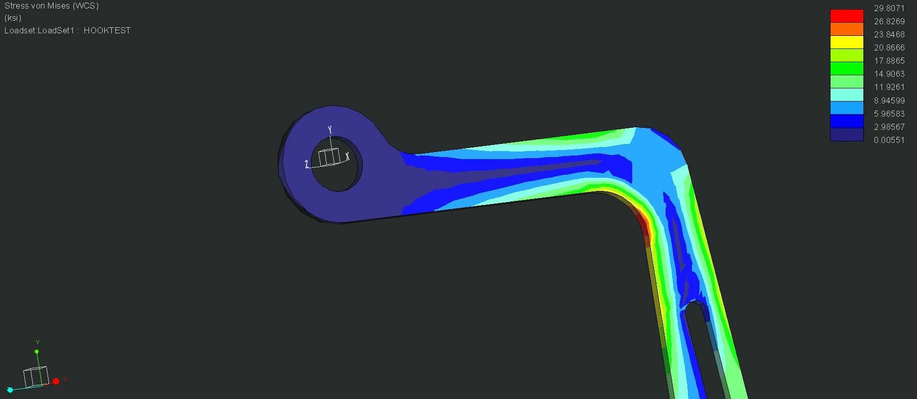 I am doing an analysis on a lifting device designed to retrieve and replace large tools from shelves. It is basically a "hook" to reach into the shelf to grab the tools using a hoist.