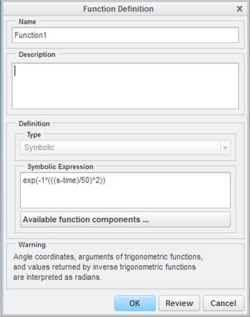 1. In the heat load dialogue box {applying heat load to the weld}, please help me in understanding the time function 1: exp(-1*(((s-time)/50)^2)),what is its significance & how you arrived to it!
