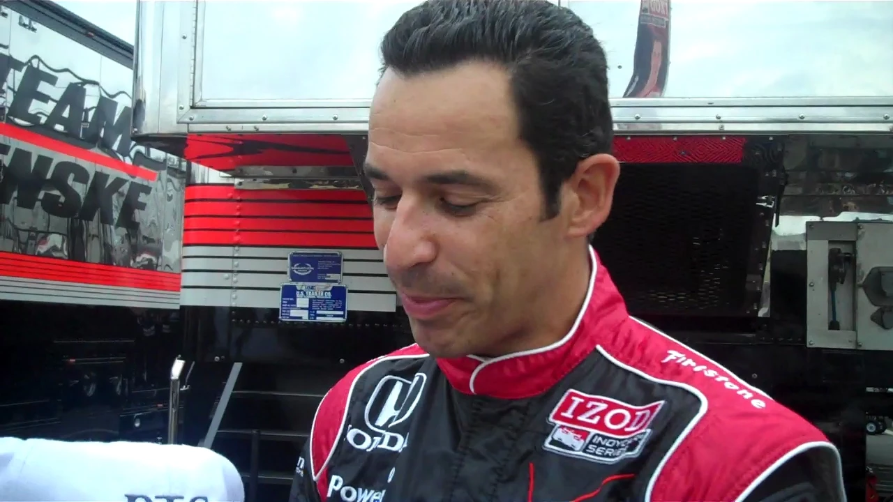 Helio Castroneves of the Penske Racing team gives PTC a thank you for it's sponsorship. Penske Racing uses Windchill for data management and Creo for design.