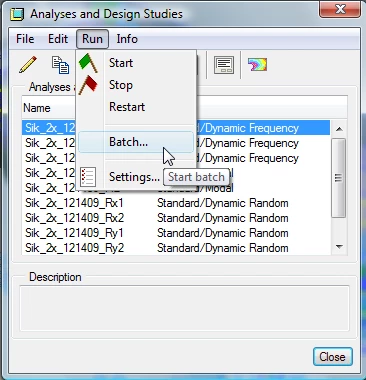 Use the Run>Batch command under the Analysis and Design Study window.