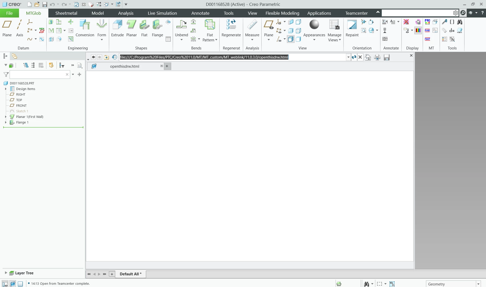 Creo 11 embedded browser blanked out