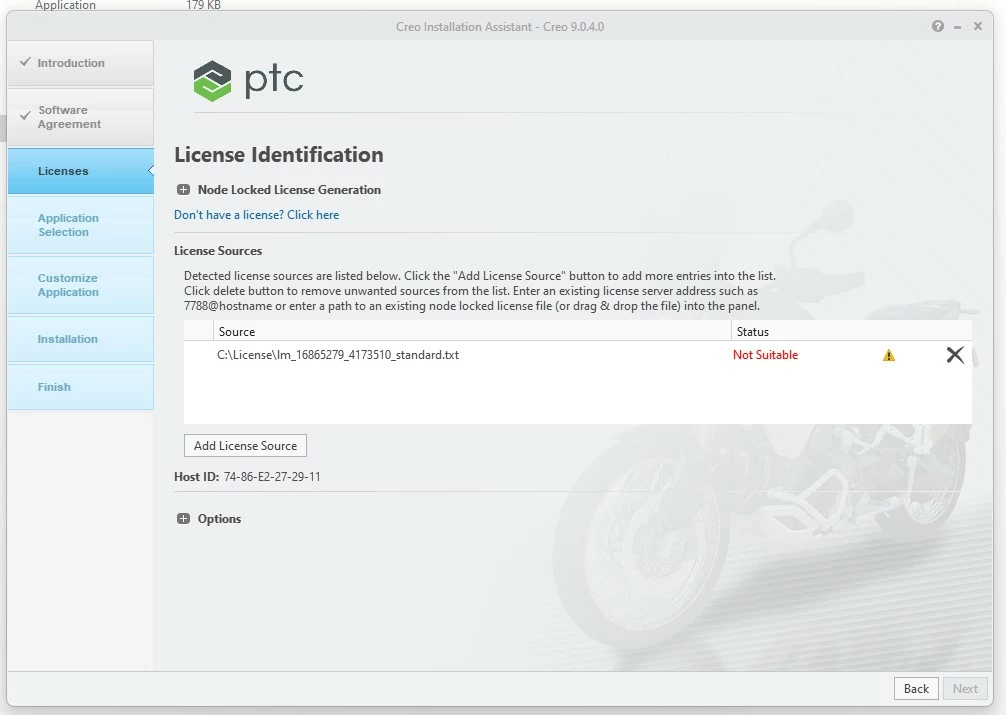 Please refer the attached screen shot, license file is not recognized while installation / re configuration. this issue appeared in already installed one (CREO 8.0). when try to re-configure, it is not recognized (it does not show "available" message when pulling license file from saved location. sometimes dialog box closes when pulling the license during configuration.