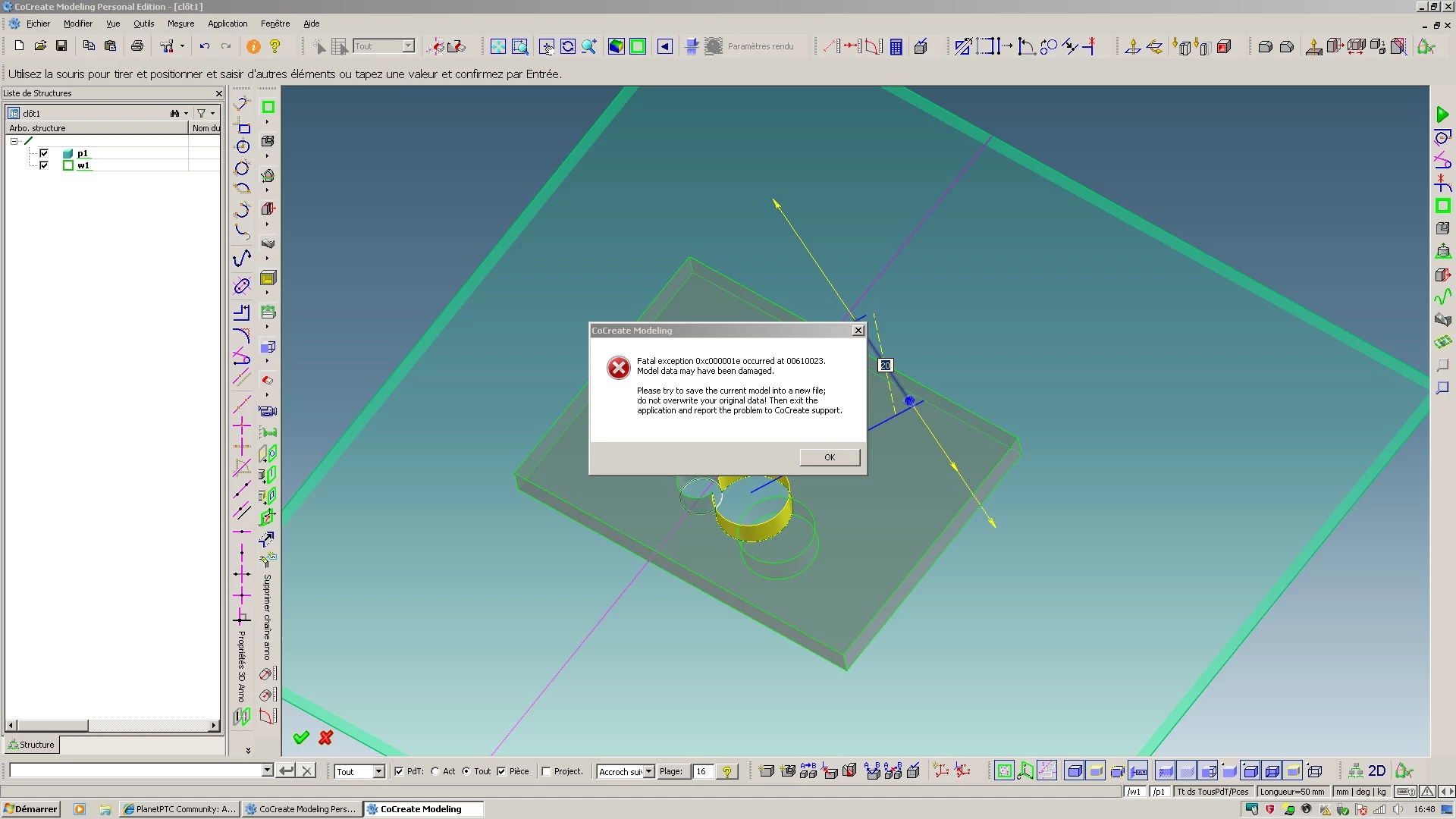 Fatal exception. Model data damaged in Cocreate3.0PE
