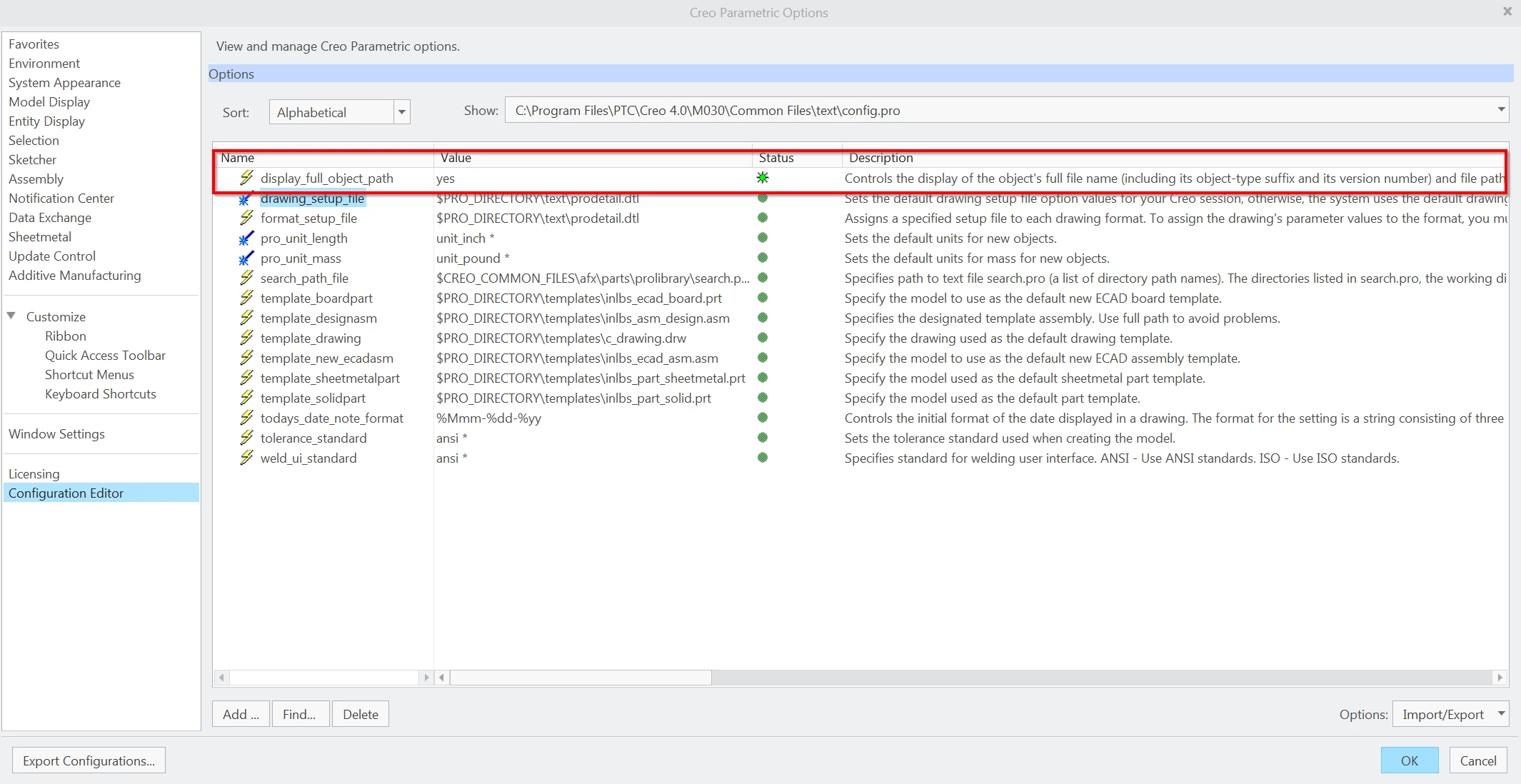 With Creo it's not clear. I looked for the answers. Suggestion is to edit config file. Is that really that complicated?