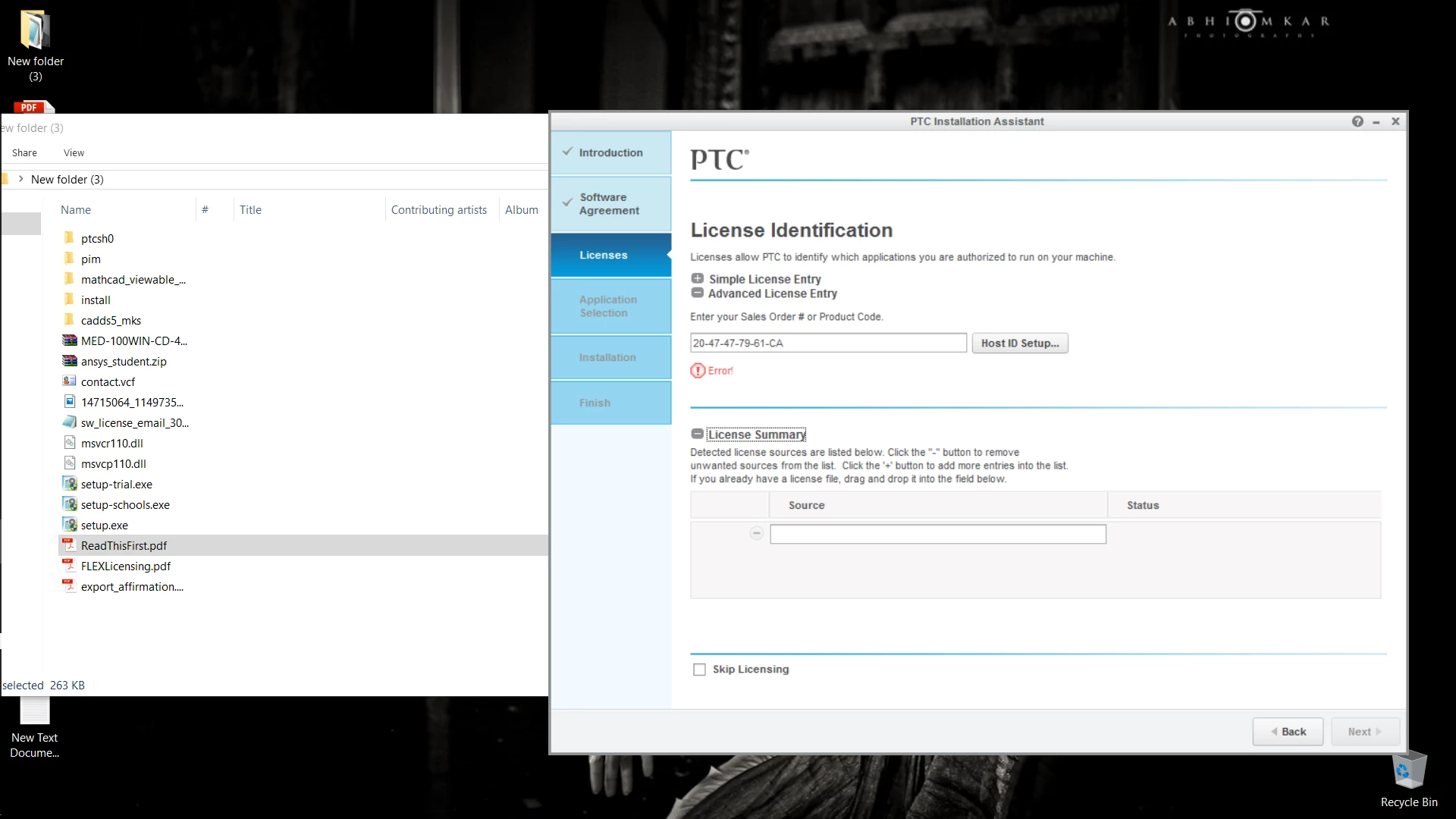 I tried to install Creo 3.0 student version. In license identification it shows ERROR. Please guide me the steps of license validation?