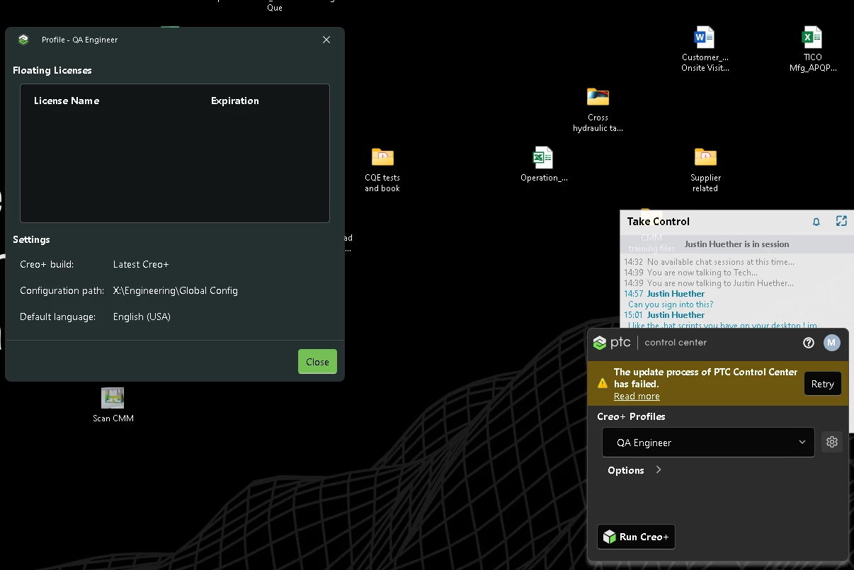 One of our users is experiencing issue with PTC Control Center not updating Creo and not being able to be updated. When trying to perform a fresh install of the Control Center is says we can't overwrite the current install. Tried everything from an IT stand point except a fresh install of windows. Any one experience this? Screen grab added