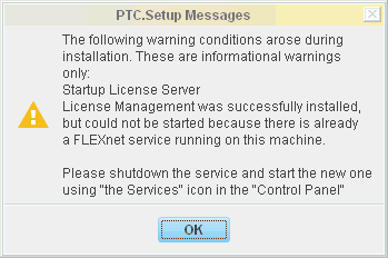PTC.Setup loaded all necessary data files into installation directory, but refused to start license server daemons and also refused to create the approproate system service.