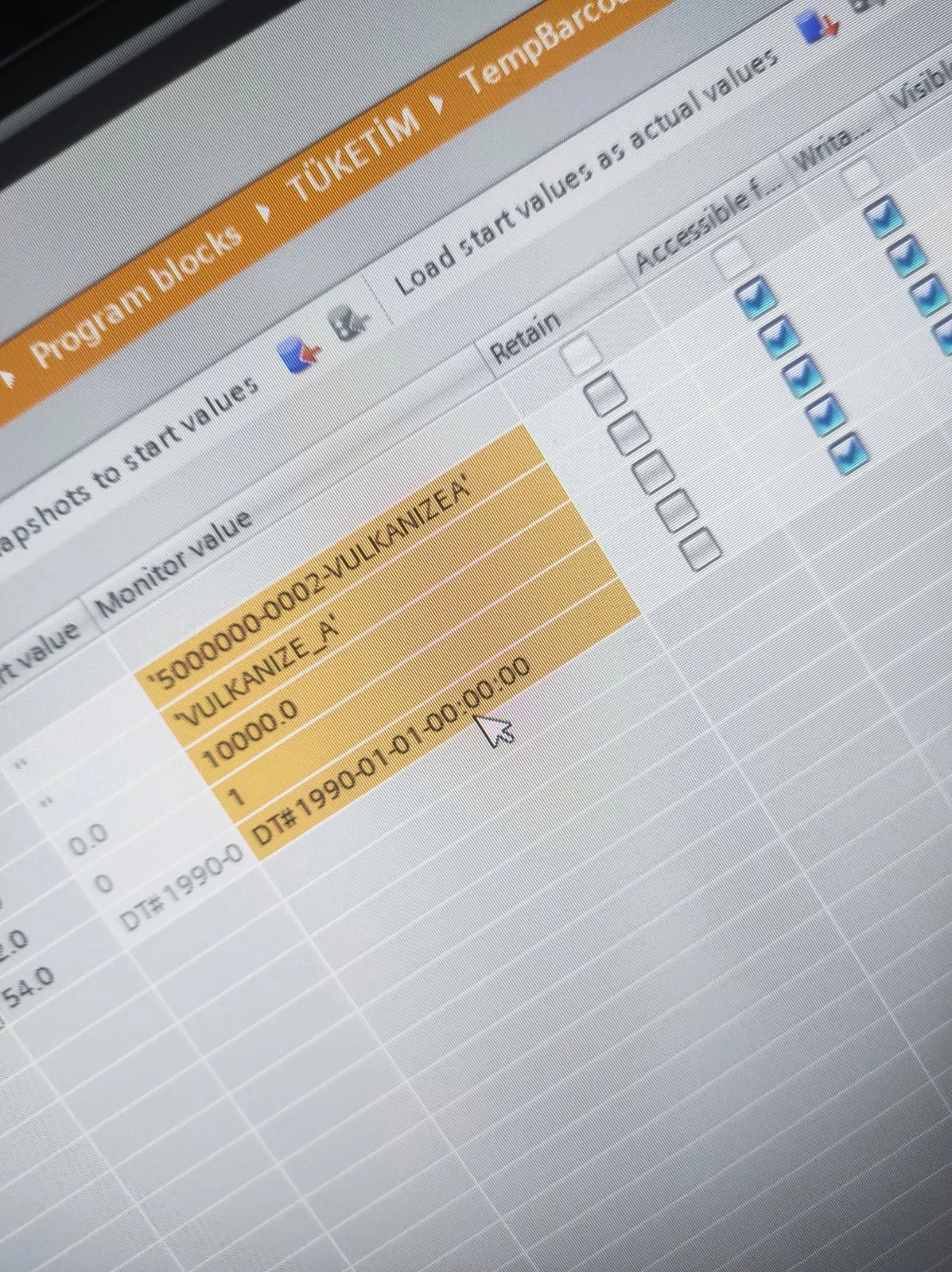 Other option is DT but DT is read-only tag so we can't use it. And DT data type is the data type we want. It's like 2024-10-10T08:23:52" but we can't write to it. We receiving a error message on SAP MII Workbench : "The item's access rights do not allow the operation. Operation was unsuccessful"