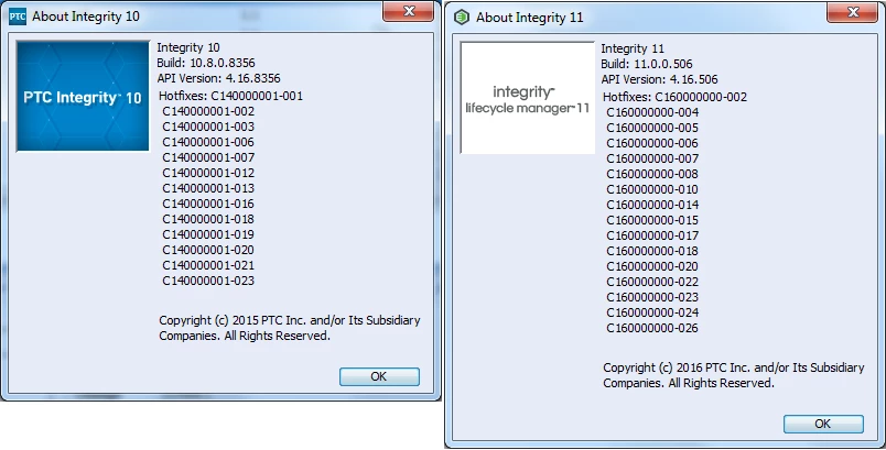 Both versions have a 32 bit JRE in "C:\Temp\IntegrityClient10.8_2\jre" and respectively "C:\Temp\IntegrityClient11.0\jre"
