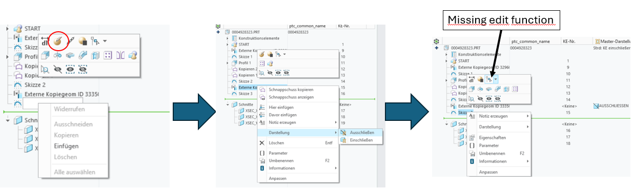 after I exclude the display of individual components using the Simplified Representation function, I can no longer edit KEs until I close and reopen the session. How can I, for example, edit sketches again?