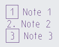 In a drawing in creo I am creating a notes section, but some of the notes are boxed. When adding a box, the height of the row increases from the text height. This causes horizontal misalignment in the column to the right. How can I add a box without adjusting the row height? Can the height of the box be reduced without adjusting font size?