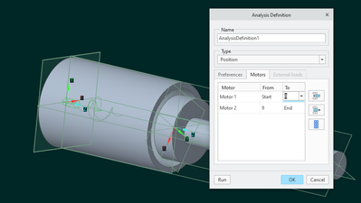 The cyl on the left is from Parker. many parts and features. Since it was not functioning with the mechanism servomotor using cylinder assembly constraints, I tried slider constraints. This was the advice on many youtube tutorials. Apparently is is more reliable? Not sure why connecting a piston to a cylinder would have trouble using the "cylinder" constraint specifically designed for this. So after many attempts to get the motor to drive the piston out and back I decided there may be issues with the Parker model. I then made the simplified model assembly on the right and went through the process of putting the cylinder on the default constraint then adding the piston using cylinder constraint. Setting limits and testing with the drag function. All good (as before). Now I start mechanism in creo and attempt to assign motors to the cylinder assembly. The motor will drive the piston out most of the way then fail with the errors I listed above. Sometimes there was a " bobble" in the travel and sometimes it would stop part way. When a second motor was added to derive it back in the opposite direction (home) it would not work. ever. when i set the times in the motor dialog as shown, nothing happens and the values reset to start/end for both motors. The manually entered values always revert to default.