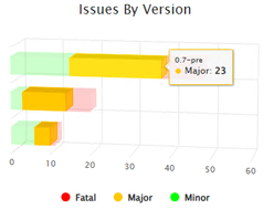 [{ StackedBarChart title='Issues By Version' seriespaint='red,orange,green' threed=true orientation=horizontal