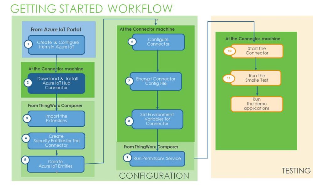 The diagram below shows an overview of the steps for installing and starting the ThingWorx Azure IoT Connector.