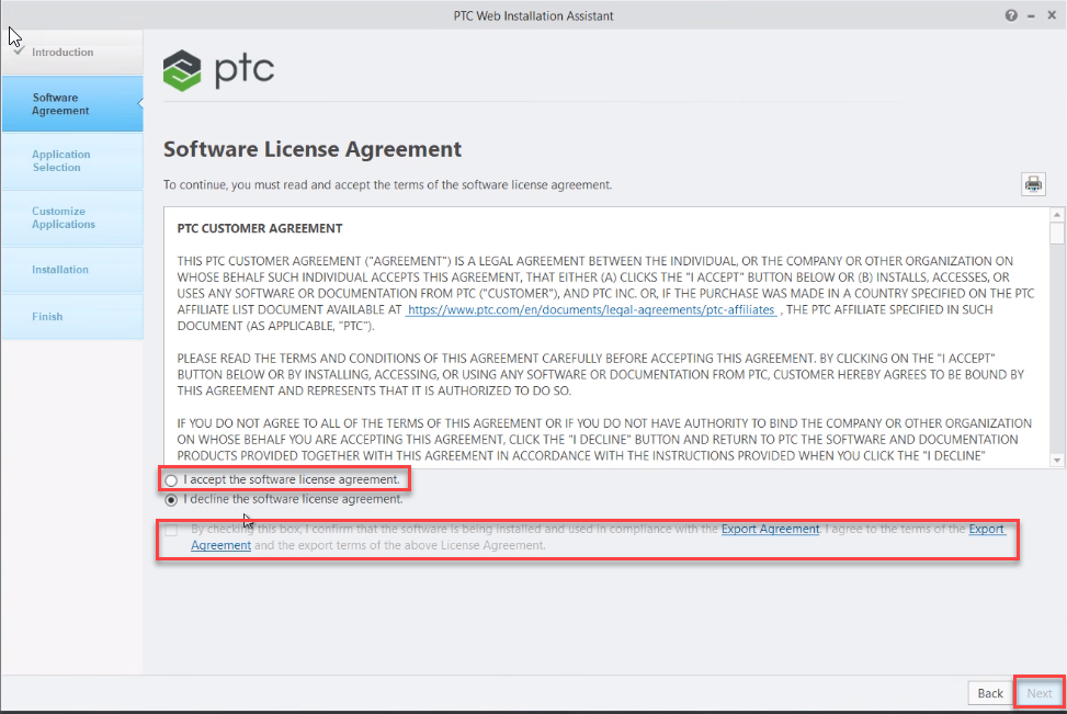 2. Select #I accept the license agreement and Check the box for Export agreement then click #Next