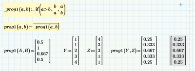 Note: this would have been a lot easier if "if" was a true function that could be vectorized over. That way, the vectorized operator could be contained within prog1 and prog2 instead of needing to be defined as first scalar functions (_prog1 and _prog2) and then as (vectorized) array functions.
