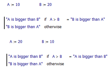 Is it possible to make Mathcad compare values of two variables and display the result in some way?