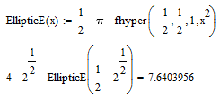 Has someone good advice for me? What I am going to try is to use the "Gauss hypergeometric function" that seems to be available in Mathcad (fhyper)