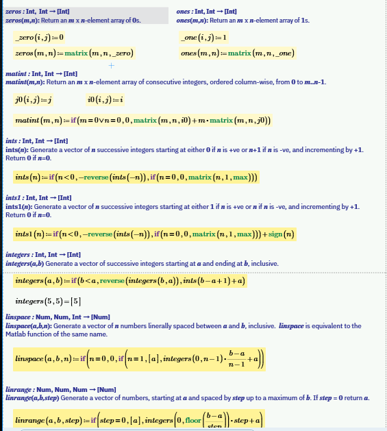 The nice thing about using your matrix(n,1,max) is that it's so simple even I can remember it, It's simple to make linspace and linrange stand-alone using this expression.