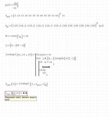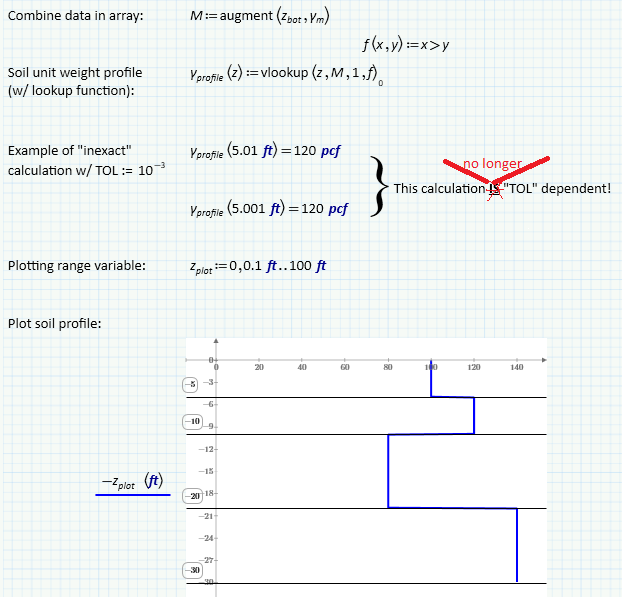I'm attempting to start what should be a simple geotechnical effective stress calculation. My first step is defining a soil unit weight profile as a function of depth (z) in an efficient and robust method. In the past, I've used "if statements" to control this however they are cumbersome and not very sophisticated. An example of what I've done in the past is shown on Page 2 of the attached worksheet.