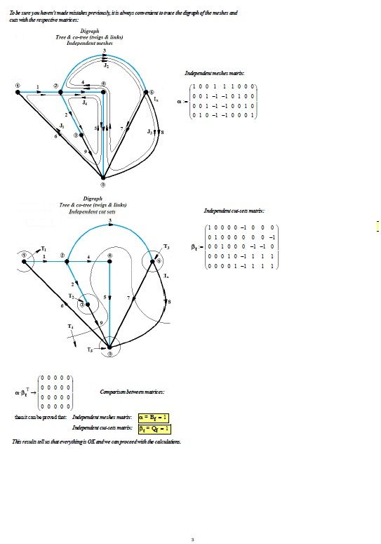 The circuit was interesting, so I analyzed it by applying the results of network topology. Having defined the branch equations and the node voltage vectors as well as the branch voltage and current vectors, I applied the method of node voltages. I obtain the same results by applying the analysis method based on independent meshes and the method based on independent cutting sets. In the following photos there are all the calculations:
