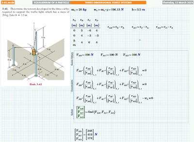 I solved a statics problem with Mathcad Prime 10 like this: