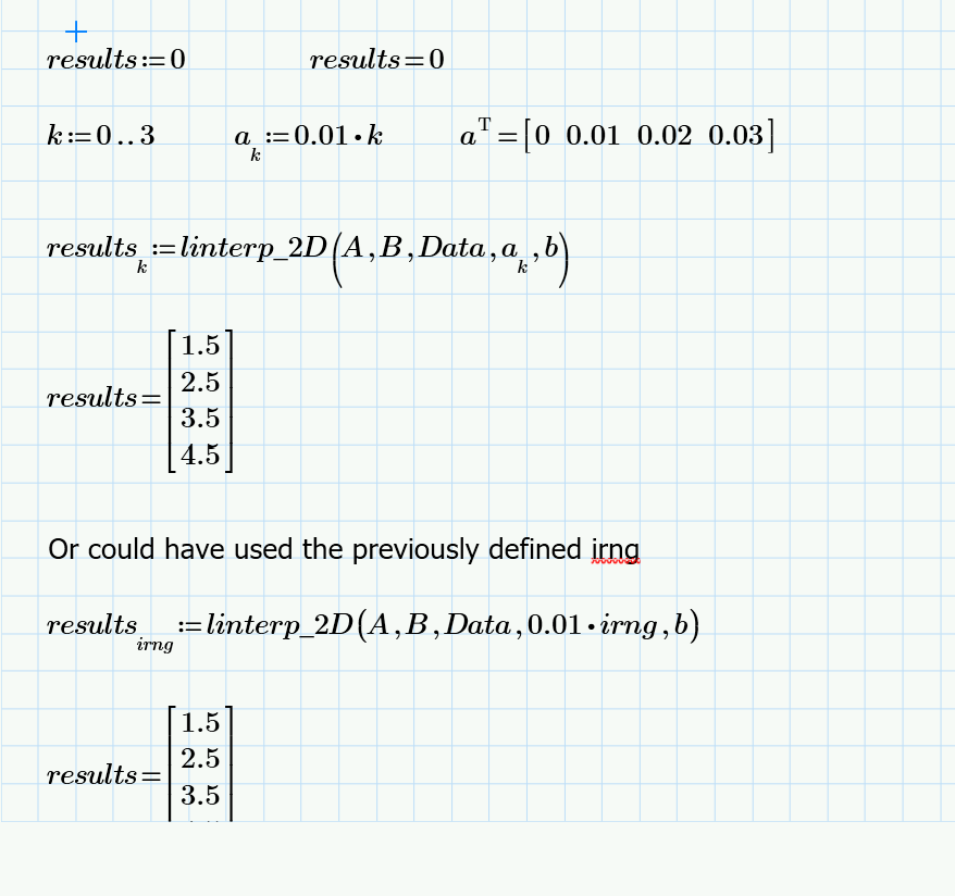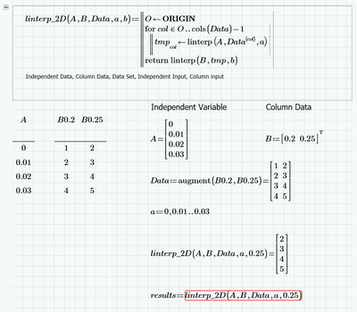 1. If the output of linterp_2D(A,B,Data,a,0.25) isn't a column vector, what is it?