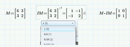 When evaluating the inverse Matrix of A, i got two different results in MP4 using the symbolical evaluation and the evaluation with "=".