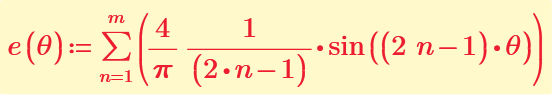 Hello ttkoro. This is Joao de Sousa Luz. I see you spent some time doing this reply/answer. Thing is I want to explain these plots in a presentation, so on I have to explain it to colleagues in college. On the other hand I have no time to spend chasing the errors in my plots, I just needed to reproduce what was made at an artcile solicited by the professor. So, after I have done that my work is done, and Werner made it very simply. I downloaded your Mathcad file, and now I see your answer, It is very good, but I don't have time, as I said before to explore more this theme, because I already studied the Fourier Series in Math classes, but I simply forgot, It was like some years ago. So now I would have to revise the issue and then try to understand your solution. I'm from Brazil, if I didn't said it befor. So thing is I have some difficults sometimes to understand some answers you guys try to describe, maybe because of how these structures are teached in Brazil. That's it, help to not make you said with this answer. I'm trying my best to reproduce your answer and trying to understanding of the issue.