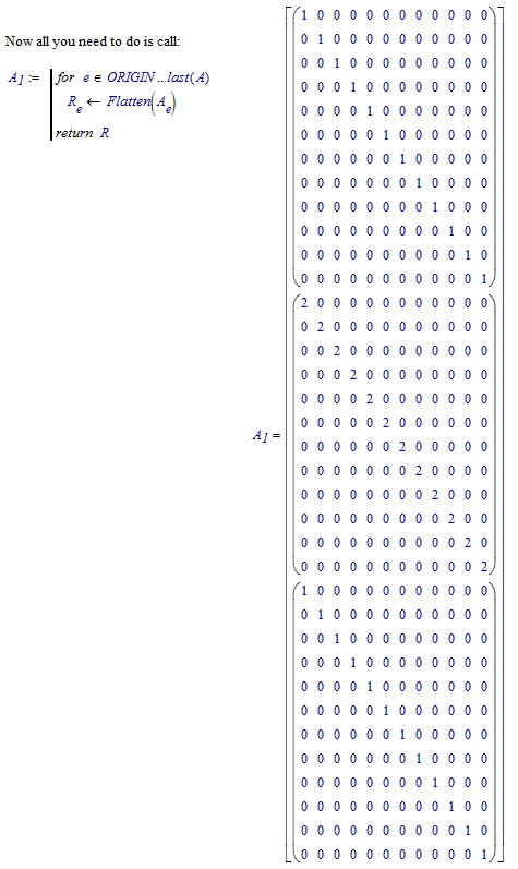 I got some help a while back from here regarding turning a nested array into a single array. Now I have a similar problem in that I need to turn nested matrices into a vector of 3 single matrices. I've tried modifying the code for the arrays but so far unsuccessfully. If anyone can help with this I would be very grateful.