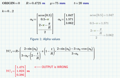I have just started using Mathcad. The problem below is driving me crazy. Any idea why it is giving me the wrong output?