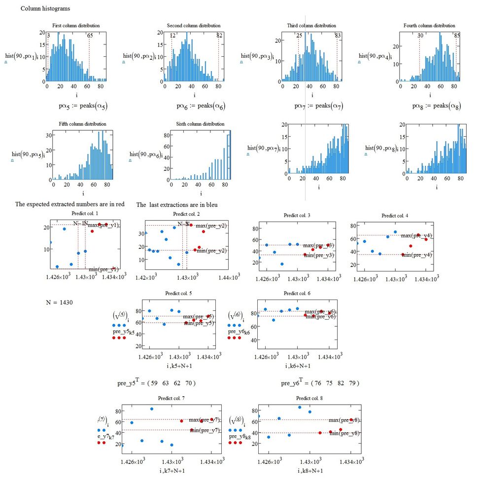things are very different when dealing with random variables. I used it to predict the extraction of six numbers placed in increasing sequence (i.e. for each extraction the numbers are arranged with the smallest on the left and the largest on the right) and on the basis of a fairly large sample, knowing, of each of them, the statistical distribution (using the histogram function) based on the position of the same with respect to the others. But the predict function, at most, found two, each belonging to one of the first three columns.