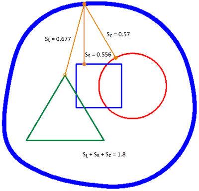 Fig. 11. Ellipse with three foci: triangle, square and circle