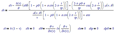 I thought I had this issue resolved by using a decaying exponential of ln (v) for Dc. This worked most of the time but for larger amplitudes (epsilon) and shorter periods (tp), the calculation does not converge. I got around this by using a cut-off, exponential decay to a finite value at infinity. I was surprised how large that value needed to be (0.4 compared to 1.0) but the problem seems to be the issue exposed by Werner - v is just increasing too rapidly for the numerics to follow (though Matlab seems to do better).