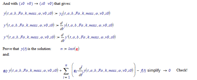 I am trying to model the second order differential equations for the shock absorber. I would like to get the funtion of the movement of the mass. I am getting errors from the Solve Block in MathCAD, and I cannot understand where is it coming from. I suppose the reason is the sin function x(t), but I have no idea how can I write it differently. Without units the solver was working fine, but with units I get always an error. I am uploading the MathCAD file.