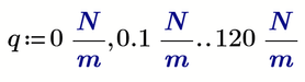So no matter if you use the native plot or the Chart component, in Prime you have to define the values q for the absicissa by providing a range variable using correct units (in your case N/m = kg/s-2. For example