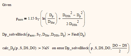 Unfortunately we cannot calculate the guess value in the solve block but at least we can pass it as a function argument. So I have chosen that the function which is called to calculate D.p first calculates the guess value and then calls the solve block function with this guess as additional argument. I also added the "onerror" statement to cope for input values which make the solve block fail.