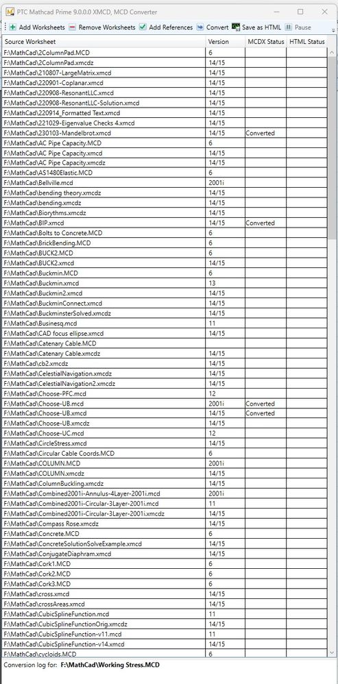 I have enormous number of .xmcd files needed to be converted to .mcdx. Inside most of them there are links to each other. Considering nested structure of my files and the fact that you can not choose the whole folder for nested convertion in built-in MathCAD Prime Converter I need to automate at least filling Converter with list of files. Would be even better - to make the whole process fully automatic. Have someone done this before? Is there any API for the Converter? Nothing like that was found by me in the PTC support database 😞