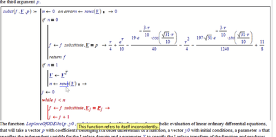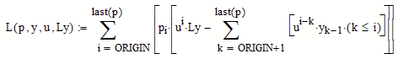In Mathcad 11 the construct with k<=i fails. As soon as I put that in, the function L forgets about the initial conditions, they're all set to 0.