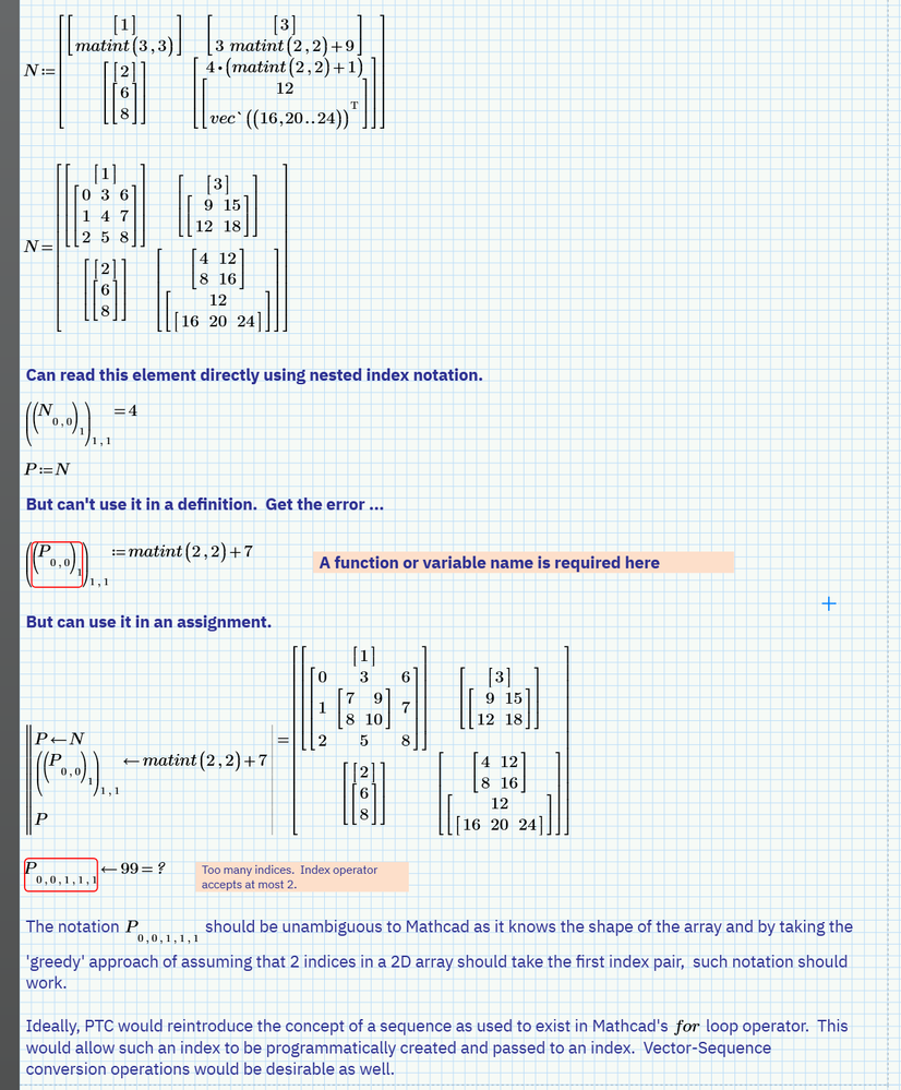 However, looking at one of your earlier messages in this thread, I hope PTC regard them as Features rather than Bugs or Unintentional Behaviour, given their Prime longevity. Consequently, I also hope to see the documentation scribes scribing away and adding them to Mathcad Prime Help.