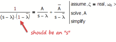 I was writing a couple of simple transfer functions in a document when it crossed my mind to check if Mathcad 15 could change the fraction to a partial fraction form - some kind of intellectual (professional?) curiosity more than anything. Of particular interest was to check if I could get the residual (of the fraction).