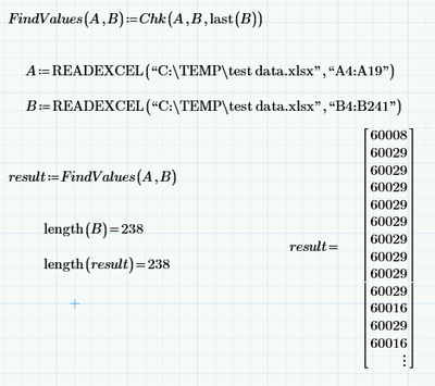 What exact result do you expect using your test data and why do you post an excel sheet and not a simple Mathcad sheet with the two matrices already included? Would be easier to deal with.
