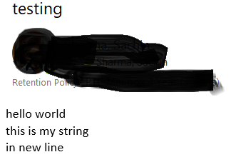 I am trying to insert a new line in string. I tried with this(below pic) but not working. Any help?