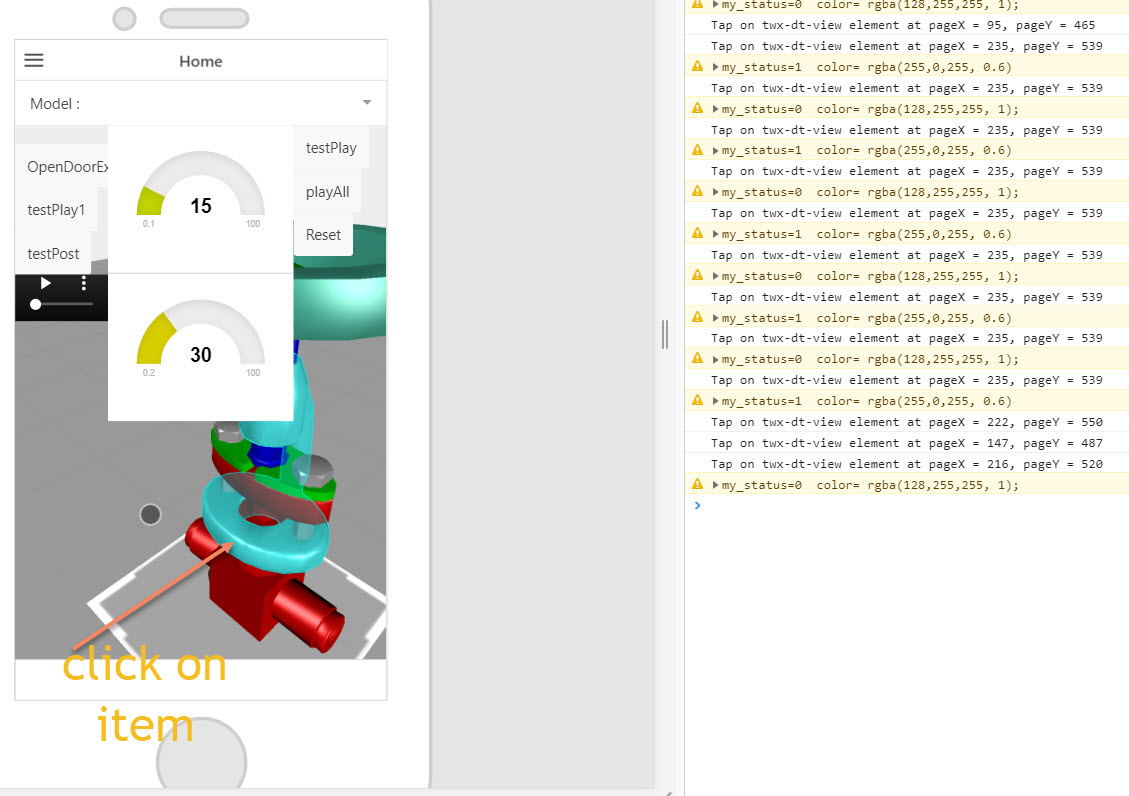 I have applied model item on top of the 3D model in Thingworx studio. I have to change the color(say red) of the 3D model on the button click and in the same way on the button click 3D model has to display the original color.